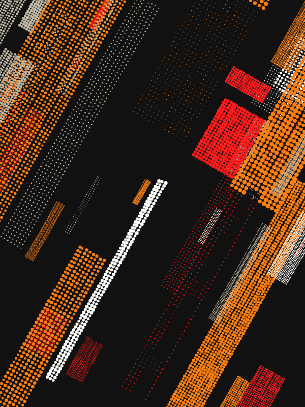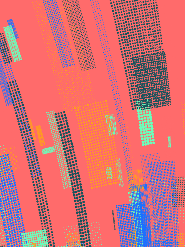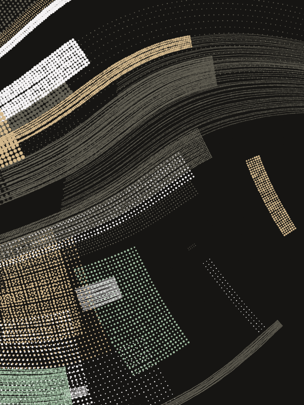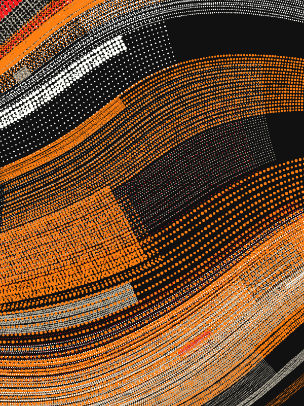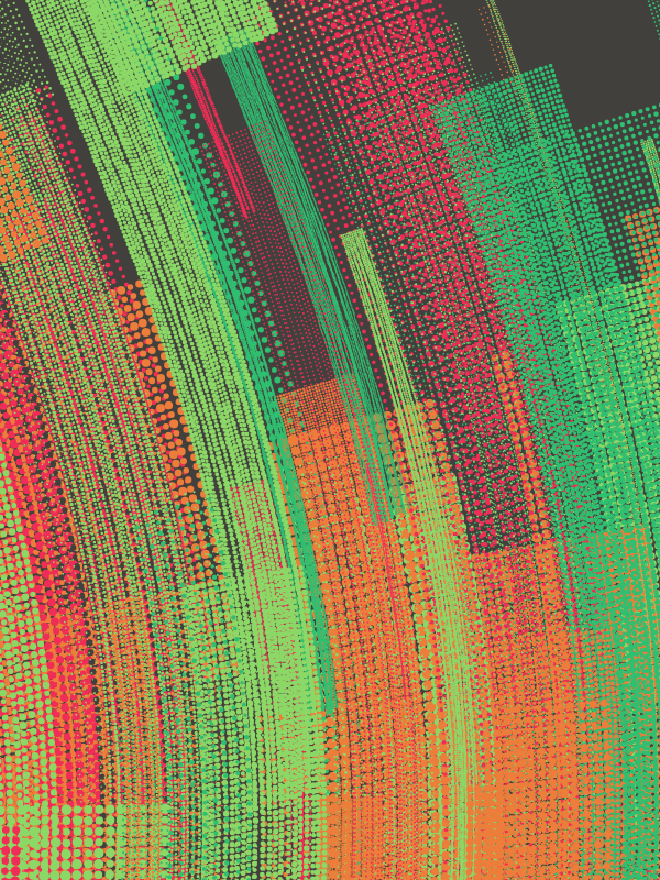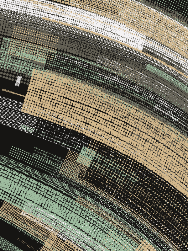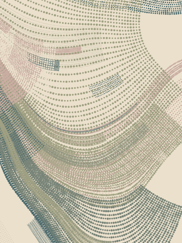 Made with p5.js.This series of generative works investigates the aesthetics of emergent order within computational systems. Utilizing perlin noise based flow fields, stippled grids of varying scale and density are layered to reveal the latent trajectories embedded within the underlying invisible vector landscape. The resulting forms are a dynamic equilibrium of algorithmic precision and organic turbulence.